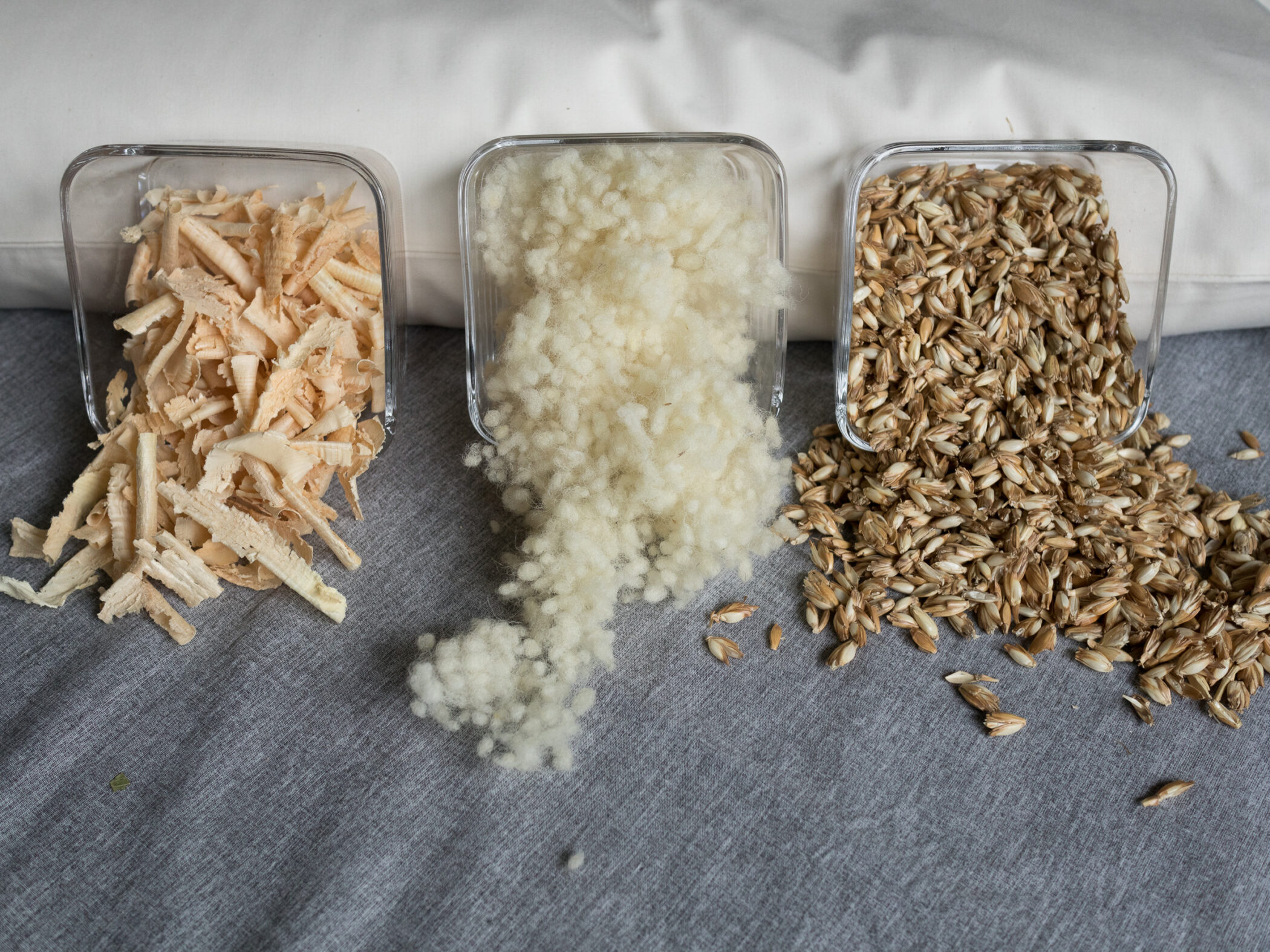 Weil sie unterschiedliche Stärken haben: Dinkel entlastet ergonomisch, Wolle reguliert Klima, Zirbe beruhigt den Schlaf. Gemeinsam entsteht ein Kissen für ganzheitliches Wohlbefinden.